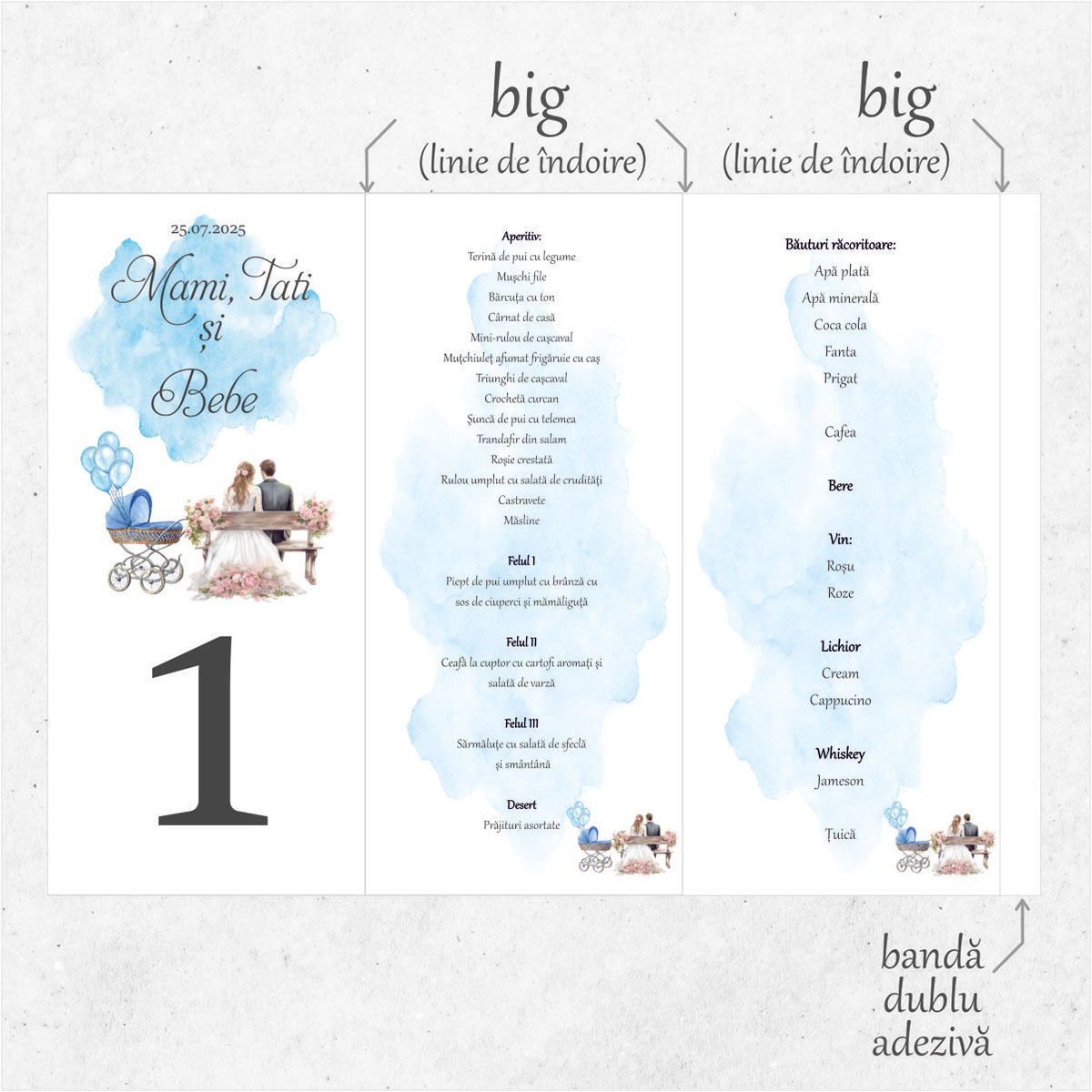 💙 Meniu triunghi Nuntă & Botez – Model 55.1 👶💍