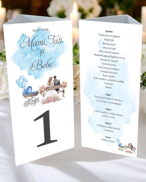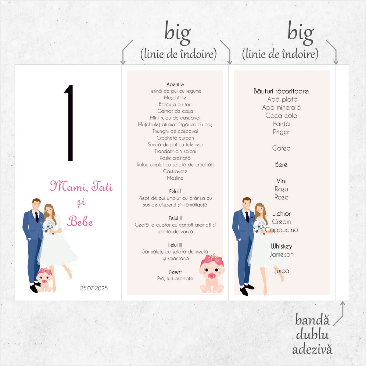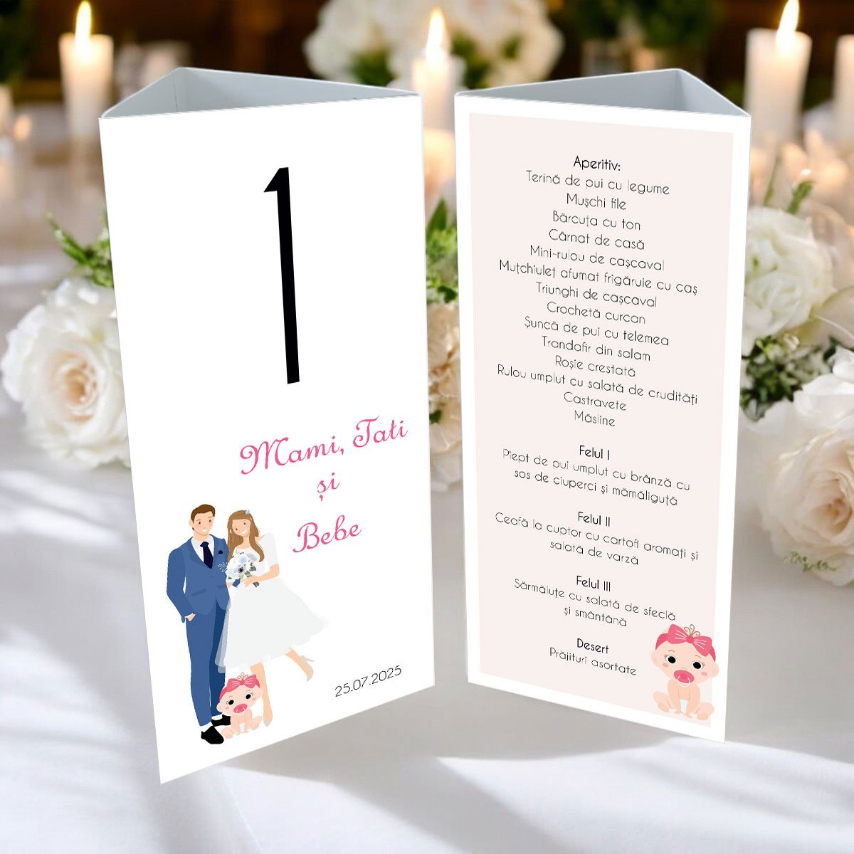 💐 Meniu triunghi Nuntă & Botez – Model 57 👶💍