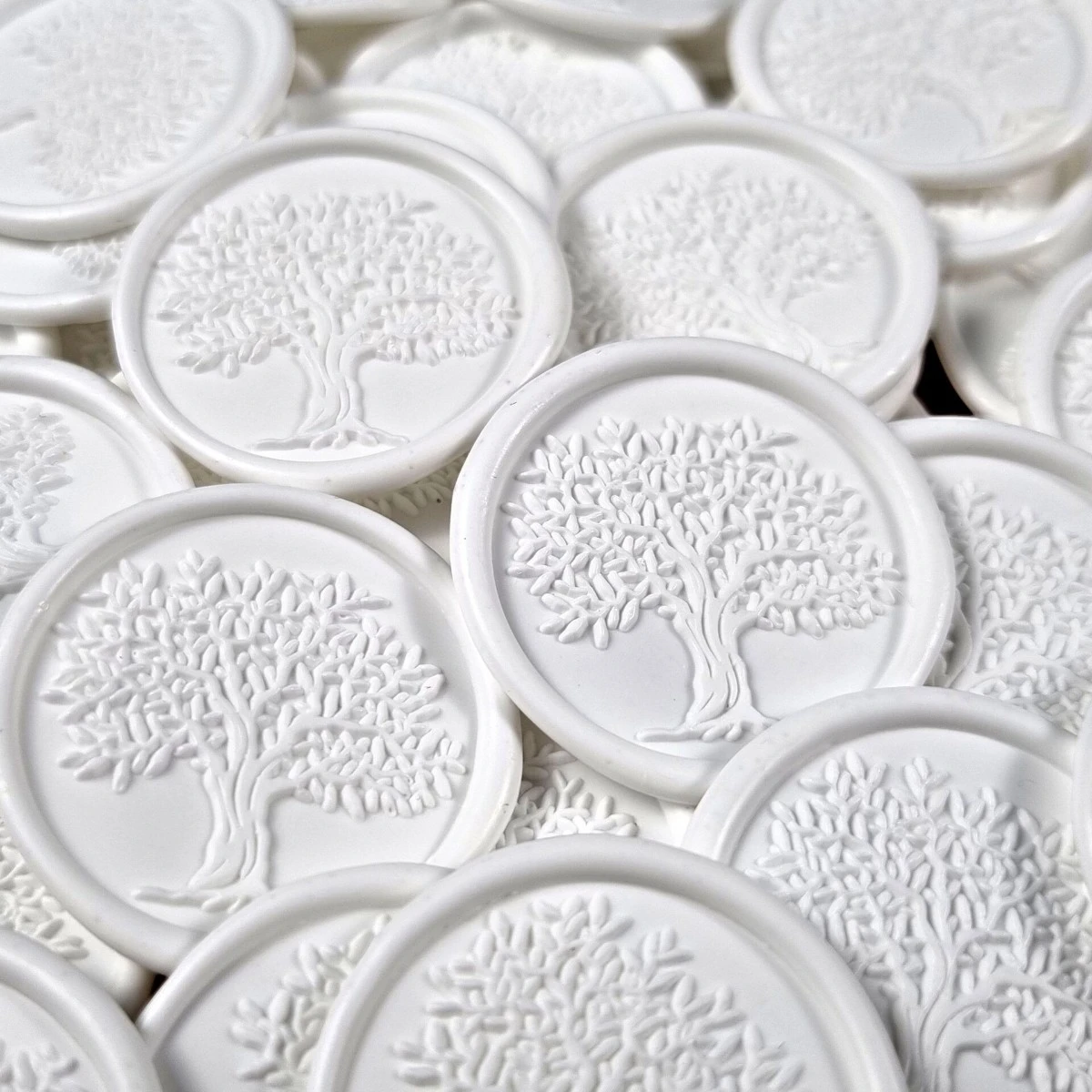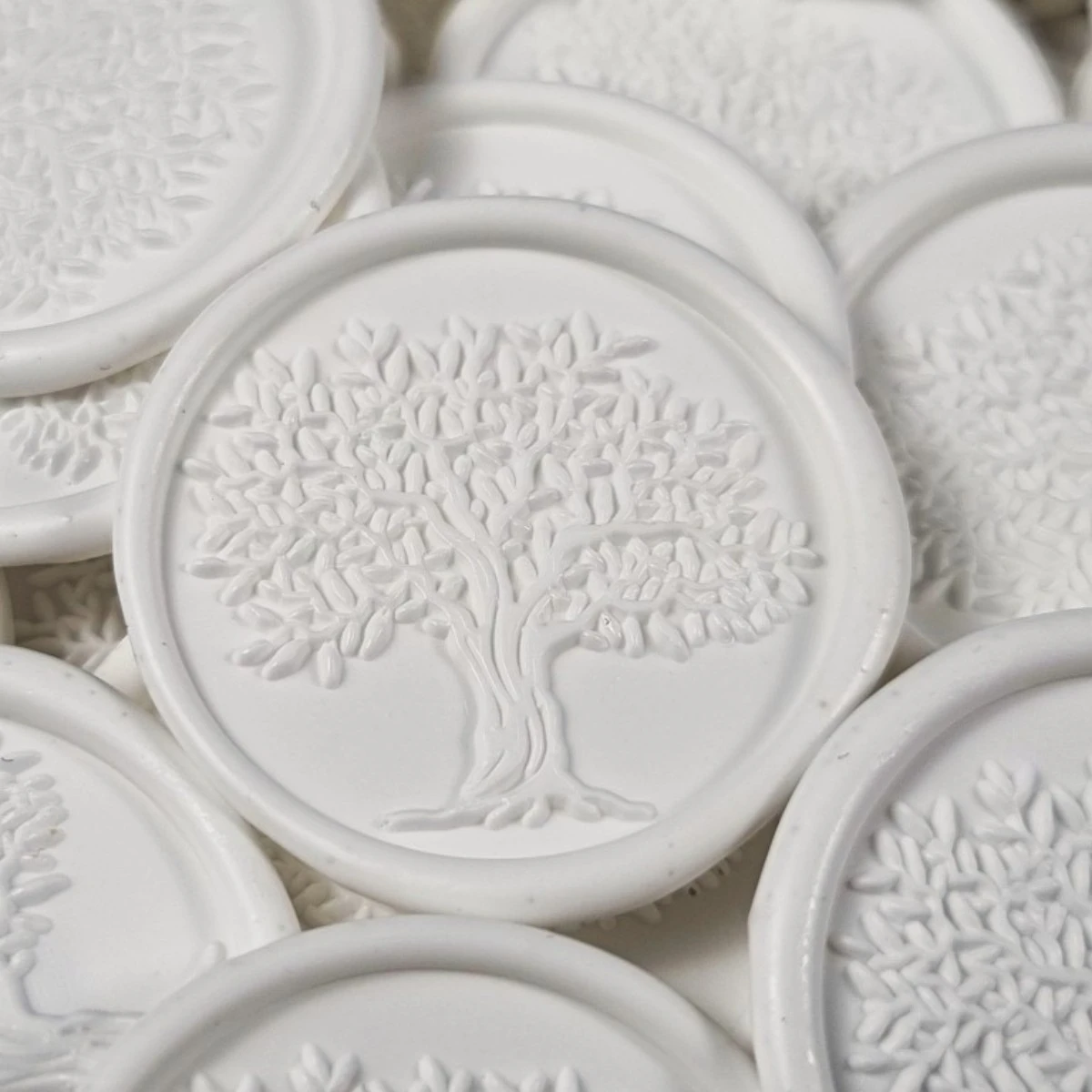 Sigiliu de ceară alb, decorat cu simbolul copacului vieții — expresie a purității, echilibrului și conexiunii profunde dintre oameni și natură. Un detaliu elegant și delicat, ideal pentru evenimente speciale și momente pline de semnificație.