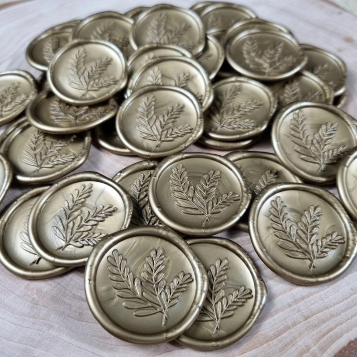Sigiliu de ceara auriu cu crenguta – sigiliu din ceara, ceara aurie, crenguta, ceara auriu, contine dublu adeziv, diametru 30 mm