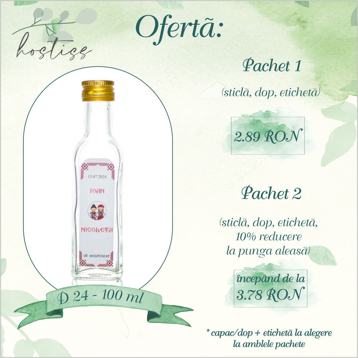 Sticla Marasca de 100 ml este mai mult decât o simplă mărturie de nuntă. Este un obiect elegant, practic și versatil, care aduce un plus de stil oricărui eveniment sau produs artizanal. Alegând acest model, vă asigurați că veți oferi invitaților o amintire frumoasă, utilă și de calitate – un gest care va rămâne cu siguranță în inimile lor.