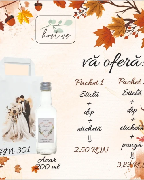 Cu mare bucurie, vă prezentăm Sticla Mărturie Nuntă 200 ml Luna, un model nou, care aduce cu sine un aer de rafinament și eleganță. Această sticlă reprezintă alegerea perfectă pentru cei care doresc să transforme ziua nunții într-un eveniment memorabil.