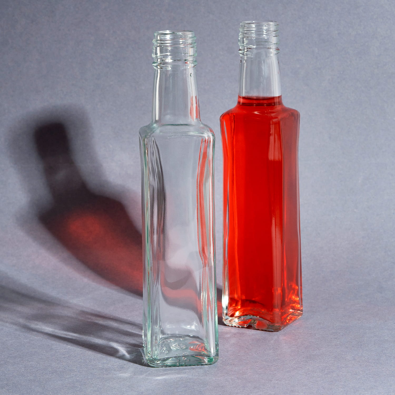 Sticla marturie nunta 200 ml Runa – olimp, cristal, patrata, sticla 200 ml, marturie nunta, sticla nunta, sticla alcool, sticla sirop, forma patrata, margini tesite